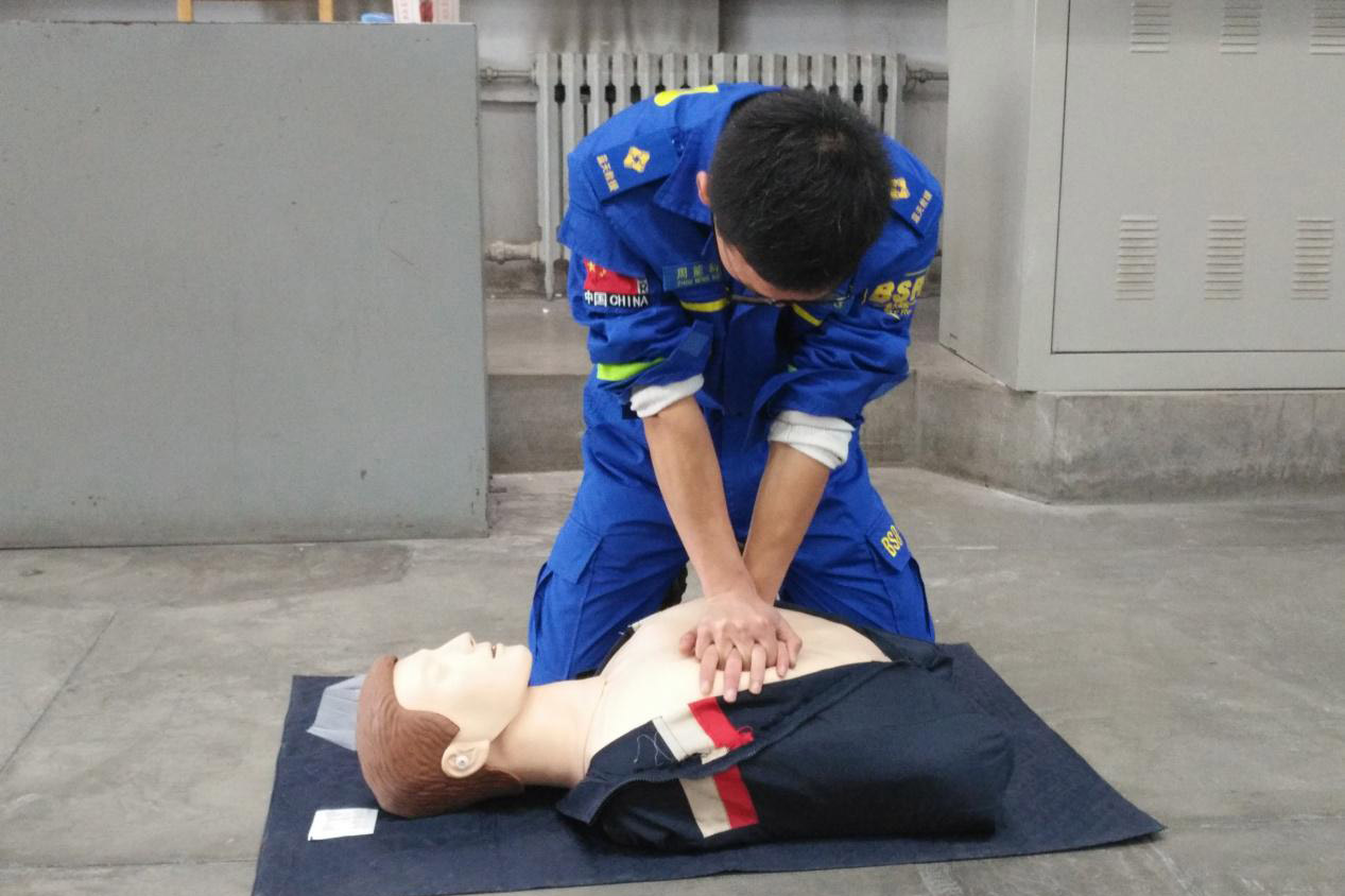 本次讲座的主讲是甘肃蓝天救援队大学生分队队长胡富江,作为参与过缅甸等一线救援活动的救援人员,胡富江队长结合自身经历为在座的同学们讲述了学习防灾减灾等安全知识的重要性。他在培训中提到:“掌握一些安全相关的常识不止能挽救他人的生命,更能在危急时刻挽救自己的生命。”此次培训的理论知识主要包括蓝天理念、地震与火灾的逃生防护、户外运动安全知识以及宿舍生活安全防护、止血包扎、CPR心肺复苏等。胡富江队长特别强调拨打急救电话的正确方式,讲授完毕后让在座的同学现场模拟演示,指正其中的错误,取得了较好的效果。在讲述CPR心肺复苏术时,通过理论与蓝天队员实际操作的结合,让同学们能够快速学会如何在“黄金四分钟”内进行有效的胸外按压与人工呼吸急救,更快更正确的挽救生命。蓝天救援队的队员们说:“急救是分秒必争,但也要有良好的自我保护意识,在保证自身安全的前提下才能救护更多的人。”所以在整场培训中他们强调救护现场自我评估与自我保护意识,避免不必要的损伤。不仅如此,蓝天救援队的两组队员向在场的同学们演示了如何进行正确牢固的止血包扎,分别包括头部、手腕、手掌、膝盖、四肢、肩膀等身体部位的止血包扎方法,并为现场的同学发放三角巾、绷带等急救用品,让在场的每一位同学都能够进行实践学习。蓝天救援队的队员们走在同学们中间进行指导与辅助,确保大多数同学都能够学习到真正的知识计较。