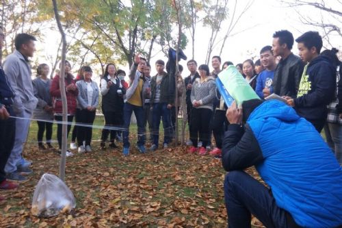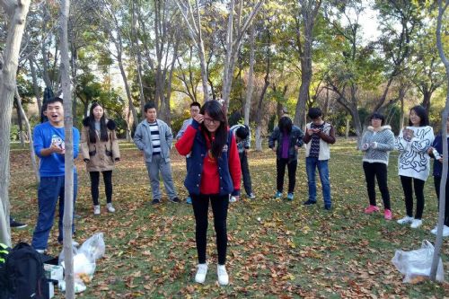 下午2:30,各站在小湖边做好签到工作就向着后山出发了,抵达山顶后,由文化站站长王永飞负责组织大家做游戏。为了调动大家的积极性,文化站还专门给获胜的小组准备了小奖品。当然,给排名最后的小组也设置了相应的惩罚(表演节目)。各种奖励和惩罚的游戏相互穿插使大家玩的不亦乐乎,同学们之间也配合的非常默契,都积极地参与游戏活动中。出乎意料的是被分的四个小组均获得奖励。所有游戏活动结束后,集体合影留念!