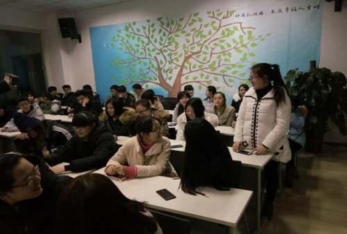 2015年12月30日晚,设计学院2015级视觉传达1班在大学生就业指导中心开展“你的大学是什么颜色?”中干联系班级系列主题班会,班会邀请保卫处副处长李鹏远针对大一新生开展了一系列关于生活、学习、安全等方面的学习培训和讨论。
