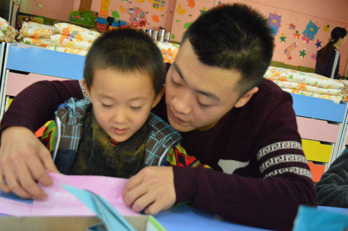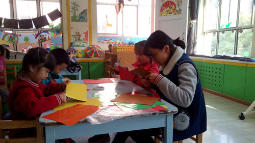 志愿者们带着事先准备好的手工材料和小礼物走进了充满童趣的幼儿园,老师与小朋友们的热烈欢迎,让志愿者们倍感欣喜。在大家经过简单的自我介绍后便开始了如火如荼的教学活动,志愿者们分成四组每组七人,先是由主讲人给小朋友们播放生动有趣的ppt教导小朋友们手工的基本方法,然后带领小朋友们在教室里教他们做纸花,做纸偶。在此期间小朋友们表现积极,动手能力强,制作手工的过程中仔细认真,志愿者们耐心解答小朋友们天真无邪的问题,手把手教他们画画,剪纸,并且关注着小朋友们的一举一动以免小朋友们被剪刀等物品划伤,让小朋友们在剪纸中体会合作与自我学习的乐趣。教室里鼓励声、欢笑声、混成一片,小朋友们、老师们以及志愿者们脸上都洋溢着灿烂的笑容。活动的最后一声“咔嚓”声的快门声中为这段欢乐有趣的时光划上了完美的句号。