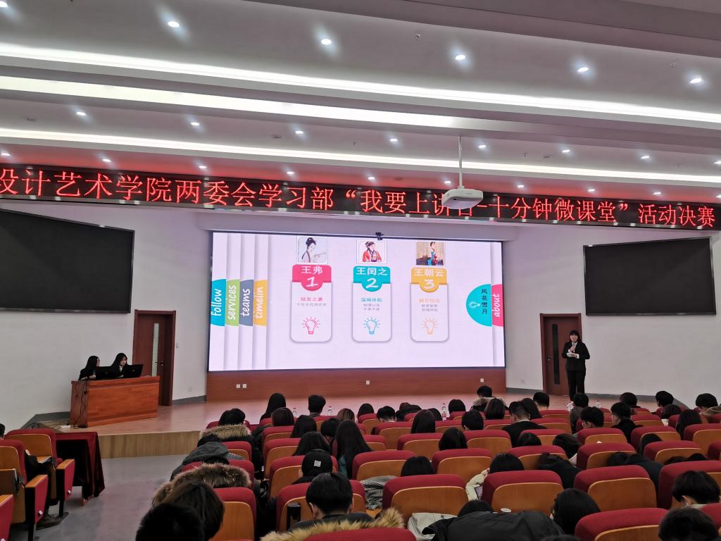 本次活动打造了一个同学们自我展示的平台,锻炼了同学们的理论素养和语言表达能力,丰富了大学生的校园生活,充分展现了设计艺术学院学生的青春风采。