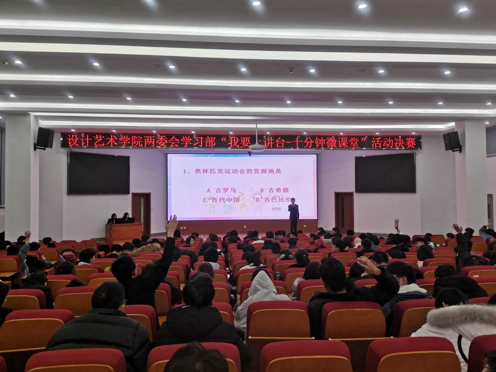 11月21日晚,设计艺术学院于兰工坪校区图书馆二楼报告厅举办“我要上讲台——十分钟微课堂竞赛”活动,设计艺术学院两委会学生干部及2020级全体新生参加了此次活动。