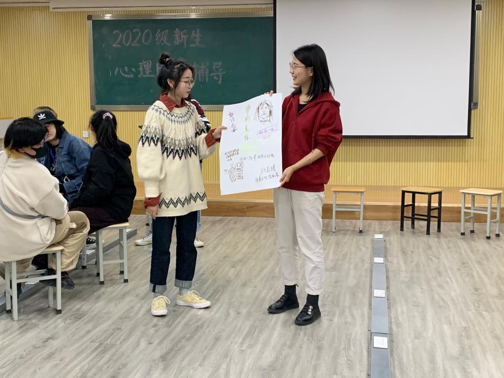 为了让2020级新生更快地适应大学生活,融入班级,建立对班级的归属感,10月13日下午14:30,设计艺术学院团委心理站配合校团委心理健康指导服务中心路翠萍老师组织开展了2020级新生适应团体心理辅导活动。参与此次活动的有2020级环境设计班全体新生、2020级各班心理委员。