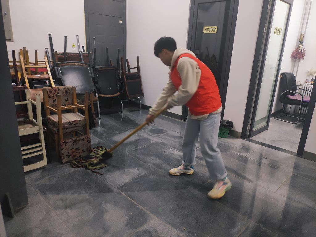 本次清扫志愿服务活动的过程中,志愿者们热情洋溢地拿着清洁工具对工作室的主要区域以及周围走廊进行清理打扫,随后大家对槐园大车间的卫生死角、灰尘沉积、角落杂物进行清扫整理。清扫志愿服务活动总共持续一个半小时。在整个清扫的活动过程中,志愿者们认真负责、积极工作,展示了阳光向上,青春洋溢的精神状态。