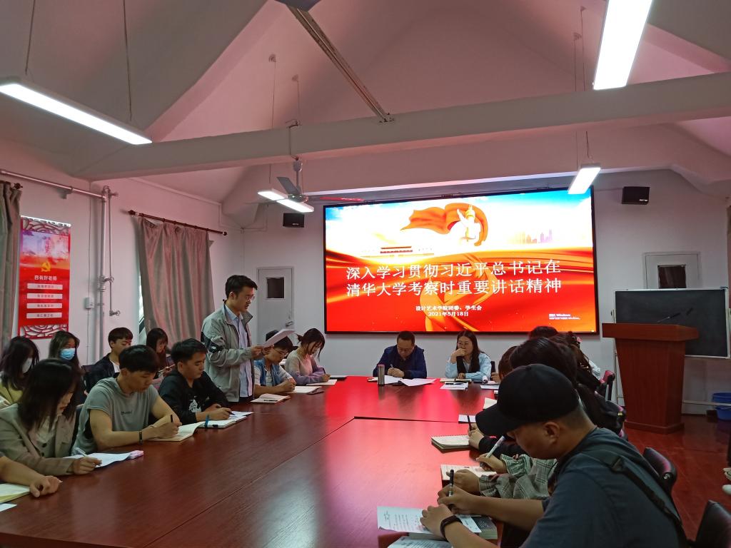 5月18日下午,设计艺术学院分团委、学生会组织学生工作人员深入学习习近平总书记在清华大学考察时重要讲话精神。会议在兰工坪校区槐园三楼多媒体会议室召开,学院党委书记吴学楷、团委书记宋美瑾及学院团委、学生会学生工作人员代表参加了此次学习交流会。