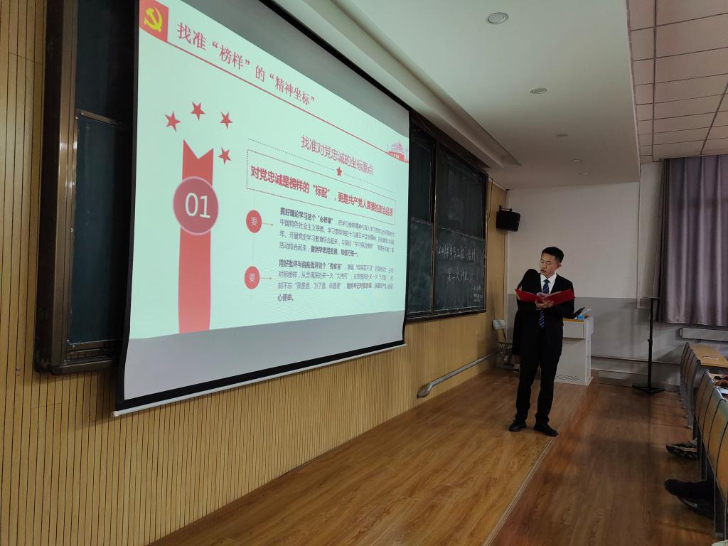 本次活动以“汲取榜样力量,续写青春之歌”为主题。张小舟同学首先为大家介绍了《榜样5》中的英雄人物,他们分别是生命守门人张西京、白衣战士张宏、“全能书记”杜云、“生命的摆渡人”汪勇、最美“格桑花”达娃仓决、英雄团队中国建筑集团。接着,张小舟从找准“榜样”的“精神坐标”出发,从三个方面引领大家感悟榜样的旗帜力量。最后,张小舟同学以人民至上、敢于担当、英勇奋斗三个词语总结了本次学习。