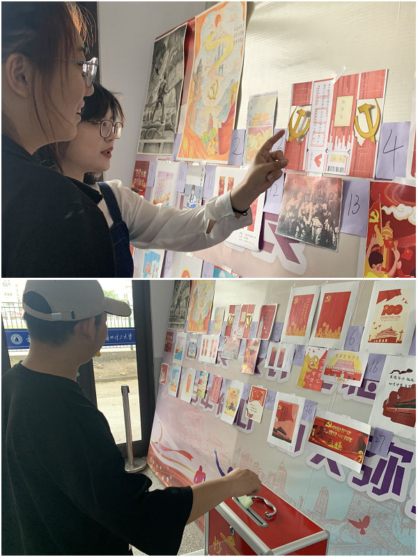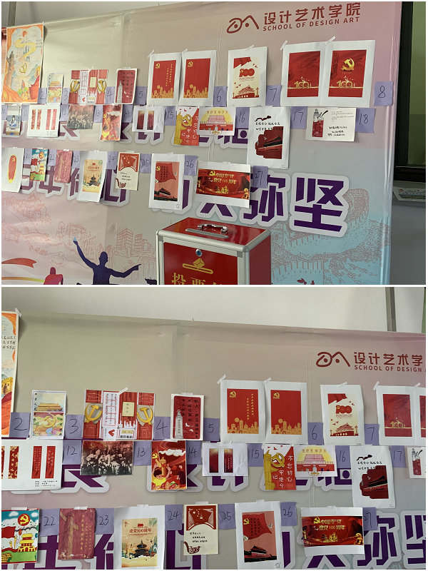 6月2日,为庆祝建党一百周年,设计艺术学院举办了“书签抒党情”活动。在琢玉楼内进行了活动参赛作品的展出和投票评选。