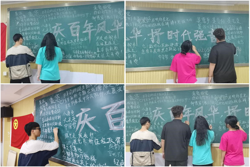 为迎接建党一百周年,设计艺术学院2020级产品设计1班团支部于6月20日在七号楼310教室举办了“庆百年风华 抒时代强音”特色主题团日活动。团支部同学积极参与,并在黑板上用三行情诗写下了自己对党的和祖国深沉的爱。