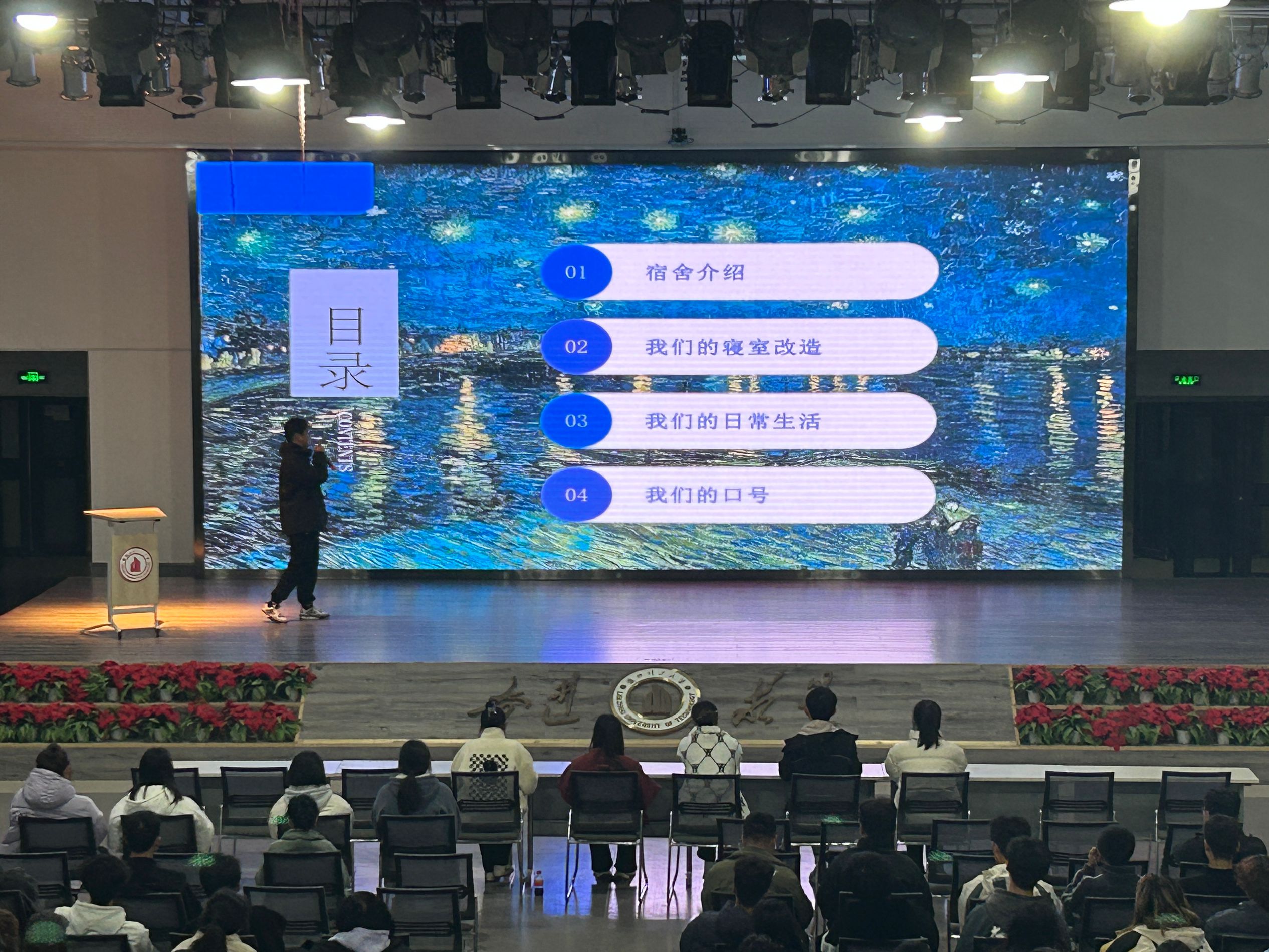全院共有38间宿舍,合计228名学生参与活动。10月30日至11月12日,工作人员深入学生宿舍,对参与活动的宿舍进行线下打分。11月18日在兰工坪校区大学生活动中心4楼,各参赛宿舍进行答辩。同学们通过PPT介绍宿舍成员、改造计划、宿舍宣言,以视频vlog的形式展示宿舍改造过程以及宿舍文化。