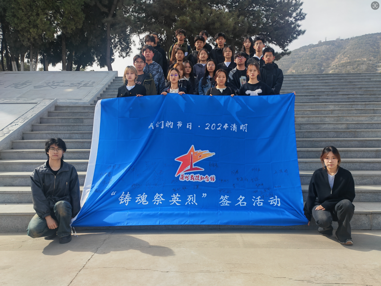 祭扫活动之后,同学们参观了兰州战役纪念馆。在纪念馆内,讲解员详细介绍了兰州战役的历史细节,青年学子沿着历史的足迹,认真倾听革命先辈的英雄事迹。满怀崇敬地瞻仰了烈士们的光辉形象。参观结束后,青年学子和兰州战役纪念馆工作人员一同参与“铸魂祭英烈”签名活动。