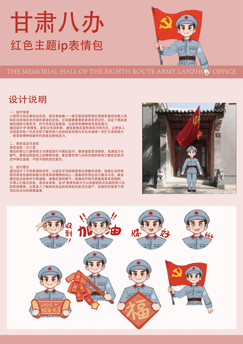 寒假期间,建筑与艺术设计学院团委携手八路军兰州办事处纪念馆,面向我校学生开展红色电子文创“表情包”作品征集活动。此次活动旨在通过年轻人喜爱的表情包形式,传播红色文化,弘扬革命精神。