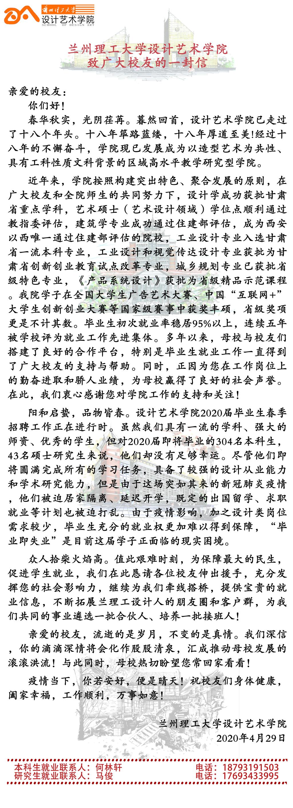 兰州理工大学设计艺术学院致广大校友的一封信