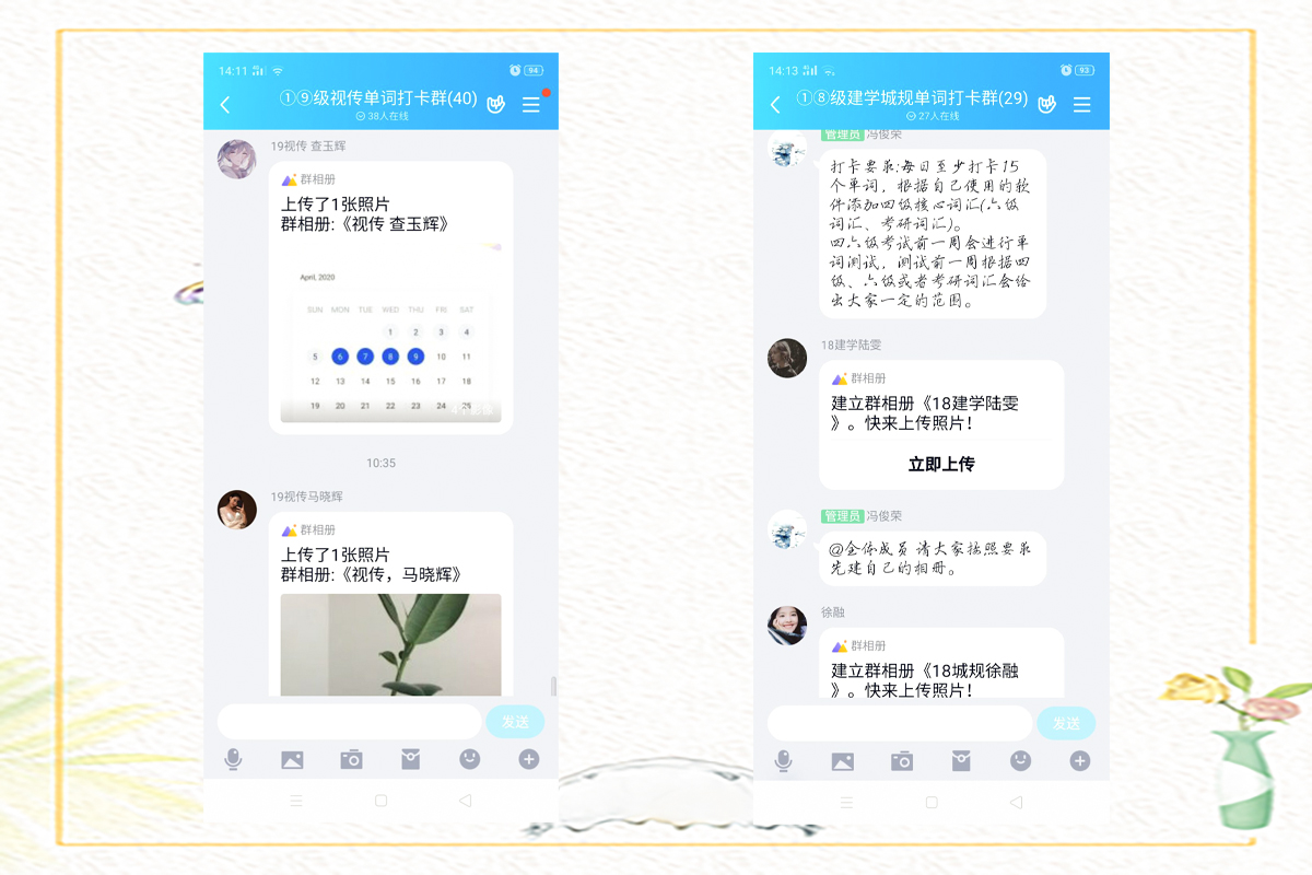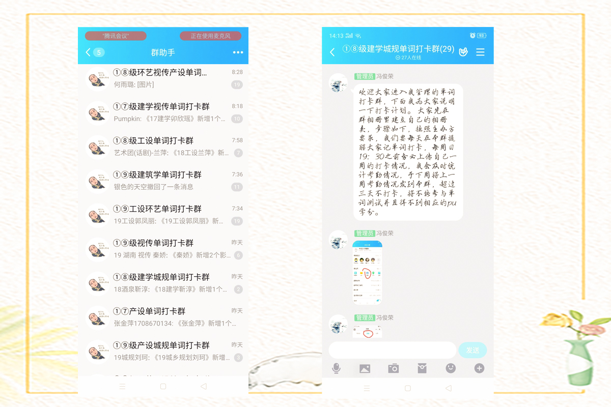 自新冠肺炎疫情发生以来,设计艺术学院在全力做好防疫抗疫工作的同时,时刻关注每一名学生的学习情况。为督促学院学生认真备考英语四级,学院组织开展线上“单词打卡”帮帮团活动,由通过四级的同学组织相应的QQ群,带领同学们学习记忆四级单词。