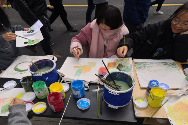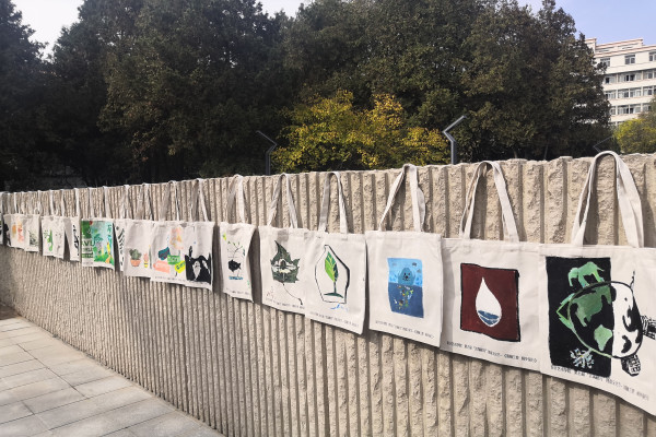 活动吸引了众多同学参与。现场,心灵手巧的同学们细心创作,在布袋上展现了自己的“环保理念”。天马行空的想象和环保公益的碰撞产生了意想不到的效果,或传统,或创新,亦或是将二者结合。完成创作后,同学们纷纷拍照留念,每一个作品都充分展示了同学们的创作能力和创新能力。