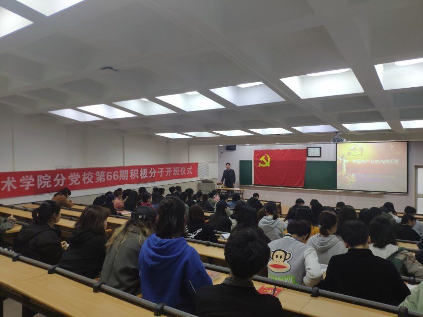 10月22日下午,设计艺术学院分党校第66期入党积极分子培训班在校本部1号北楼203教室正式开班。学院党委书记王正民主持了本次开班仪式,本次培训班学员总计80名,培训方式采用集中辅导、分组讨论、个人自学相结合的形式进行,最终将会通过闭卷考试和撰写个人学习心得进行综合考核。