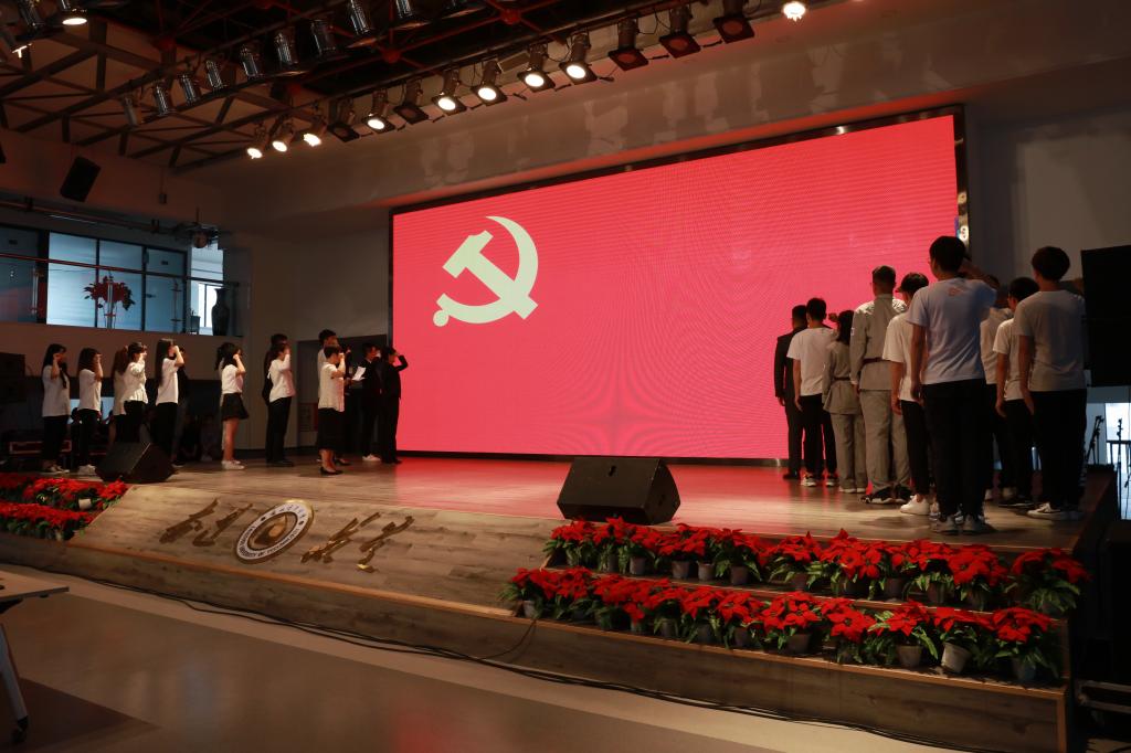 随着熟悉的《义勇军进行曲》旋律响起,在场所有人开始认真庄严地面向鲜红的国旗,自豪地唱起国歌。礼毕之后进入第二项,由在场的研究生老党员为新党员佩戴党员徽章。随后,新党员进行入党宣誓,老党员重温入党誓词,由学院党委副书记杨利玲领誓。带着鲜红的党徽,郑重宣誓,一字一句都真实、沉重。所有党员都用真挚的感情,炙热的爱国爱党之心,深情地表达对党的热爱,以诵读红色诗抄的方式铭记历史,缅怀先烈。我们深知,革命先驱的鲜血没有白流,灌溉了华夏朵朵鲜花,看今日之中华,春意盎然,繁华兴旺。