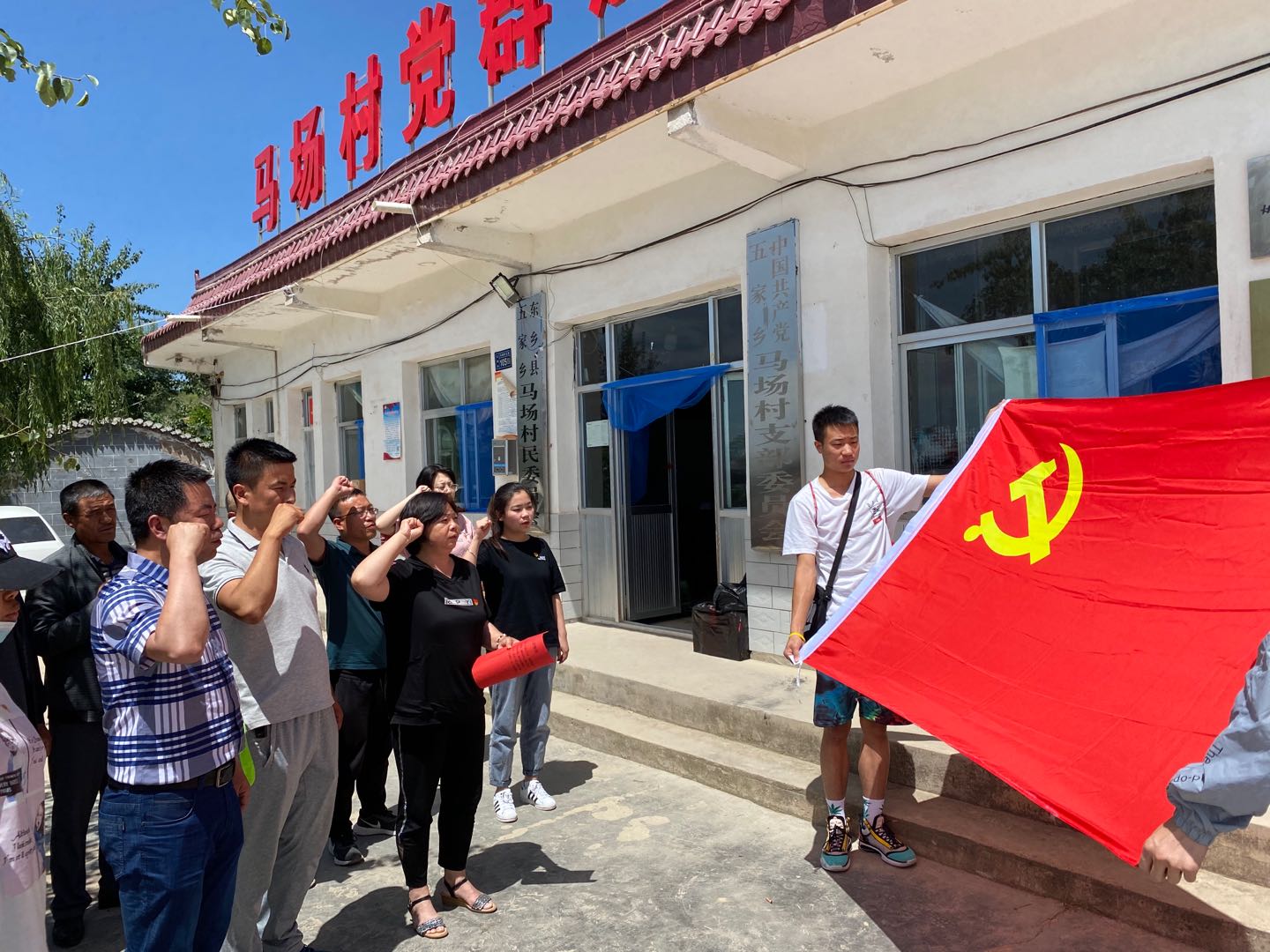 杨副书记和学生党员先来到老党员家里,代表学院党委向4名老党员送上慰问品表示问候,为他们送上学院党委的温暖,了解老党员生活情况,了解他们为本村脱贫攻坚工作所做的工作。在村党支部,两个支部的党员面对党旗重温入党誓词,阳光下党旗格外耀眼。在座谈会会上,两个支部交流了标准化党支部建设的做法和经验,对进一步深化结对共建进行了讨论,探讨商定了暑期共建的具体工作。学校扶贫办主任王斌在会上介绍了马场村多年来在脱贫之路上的点滴变化和自己多年来的扶贫感受。