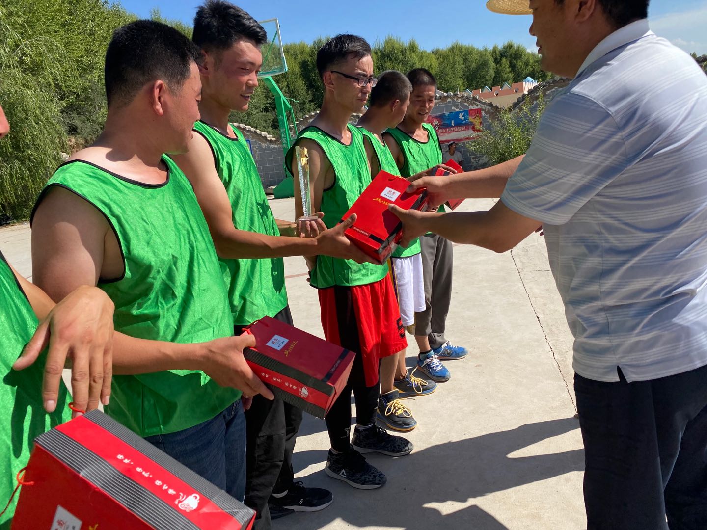 在村里篮球场,学院篮球队与马场村篮球队举行了扶贫攻坚,结对共建篮球友谊赛。双方队员以饱满的精神状态投入比赛,场上大家你争我夺,比赛激烈而又友好。精彩的比赛吸引了众多村民前来观看,每一个进球赢得大家的阵阵喝彩声。赛后王斌主任、杨利玲副书记为双方队员颁发了奖杯与纪念品,并合影留念。这次共建扶贫活动,内容丰富。特别是篮球友谊赛,增进了村民与师生的了解,扩大了共建扶贫的影响,拓展了扶贫共建的形式和内容。