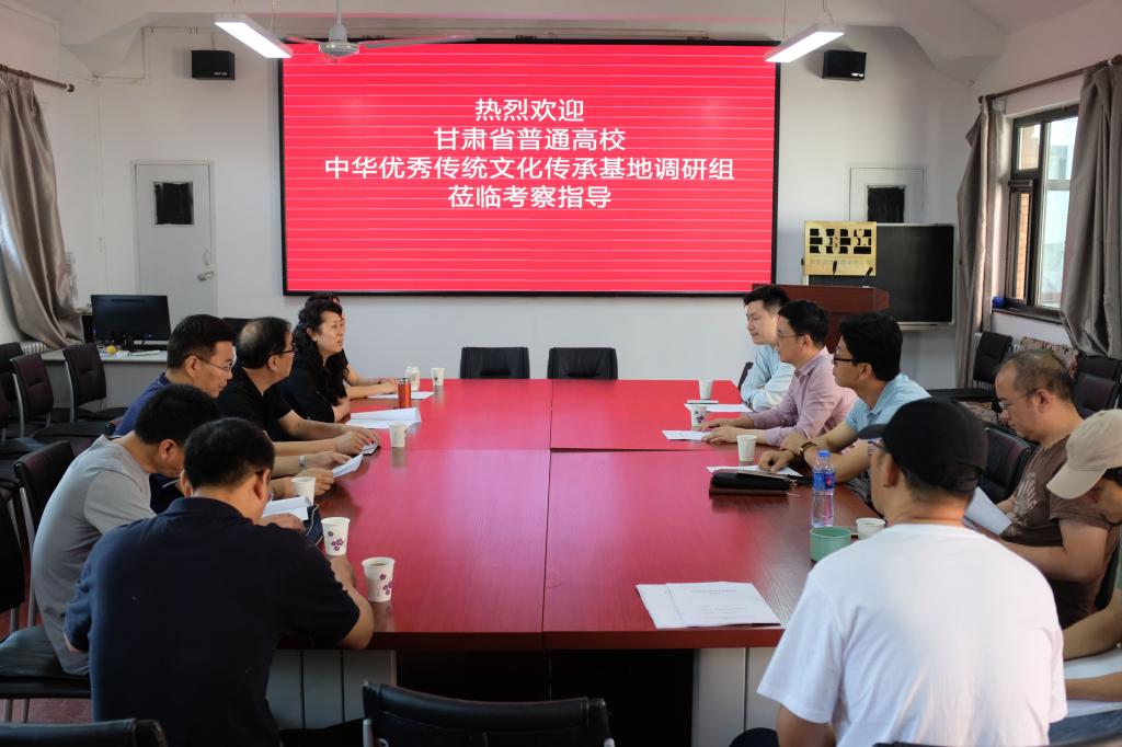 7月17日,甘肃省普通高校中华优秀传统文化传承基地调研组专家一行五人实地考察设计艺术学院中华传统优秀文化传承情况,兰州理工大学胡洁副校长、设计艺术学院党委王正民书记出席并陪同。专家组由甘肃省教育厅体卫艺处处长高彩玲,甘肃省教育厅体卫艺处副处长张捷,甘肃省教育厅学校艺术指导委员会常务副主任、甘肃省音协名誉主席孔庆浩教授,西北民族大学音乐学院院长、甘肃省音协副主席赛音教授,兰州交通大学艺术学院院长、甘肃省美协副主席郭殿声教授组成。