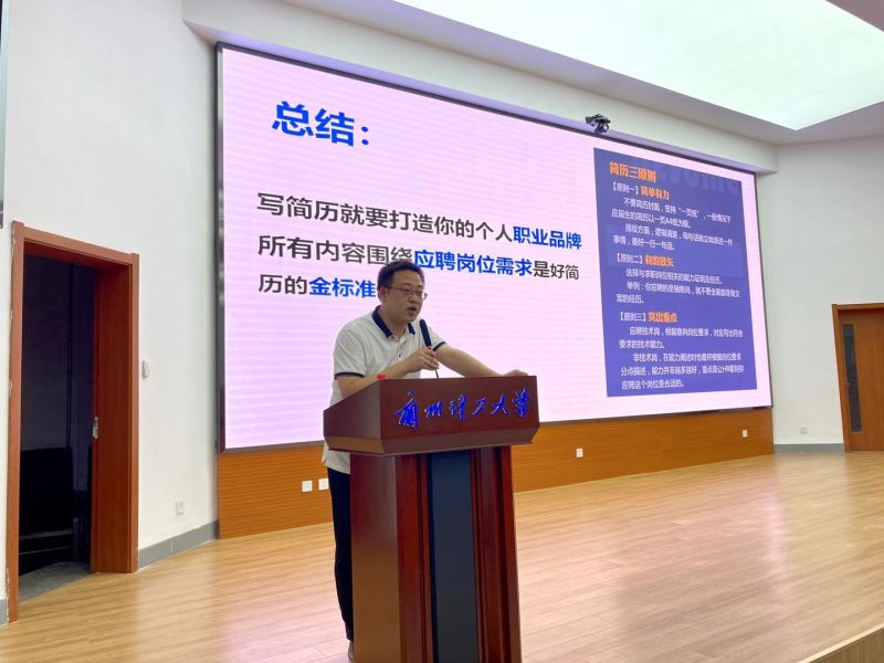 李竹梅主任首先从三个方面出发,对就业中的突出问题提出解决办法。一方面,毕业生要准确把握就业面临的新形势。在疫情的影响下,毕业生就业困难,对于找到心仪工作可能信心不足,但在求职过程中,同学们要充分做好就业准备,积极就业。另一方面,在求职的过程中,一定要把握好来自求职的三大因素的影响,并提前做好应对准备。最后一方面,李竹梅主任与毕业生们分享了大家即将面对的招聘会的整个流程,并强调在求职过程中要有自己的目标,不要盲目跟风。当求职中面临的机遇,要积极抢抓,增加就业机会。随后,苗军老师、马文静老师分别从如何制作一份优质的简历和求职面试礼仪与技巧,为全体2021届毕业生作出了系统的讲解。