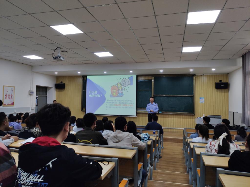 讲座初始,宣讲民警就向广大师生指出,举办宣传讲座的目的在于当代大学生没有足够的社会生活经验,很容易受到电信诈骗,而电信诈骗作为一种伴随网络出现的新型犯罪方式,具体隐蔽性强,危害性高,涉案金额大等特点。随后宣讲民警在课堂上就电信诈骗的特点,电信诈骗的危害,电信诈骗的种类进行了细致的讲解分析,列举了12种针对学生的电信诈骗手段和应对措施,尤其是针对近期一些学校学生被骗案件高发的冒充借钱案件、消除不良征信案件、冒充客服退款案件和校园“套路贷”等案件结合实际案例进行了深入的剖析,最后宣讲民警对部分学生的提问进行了一对一的解答。