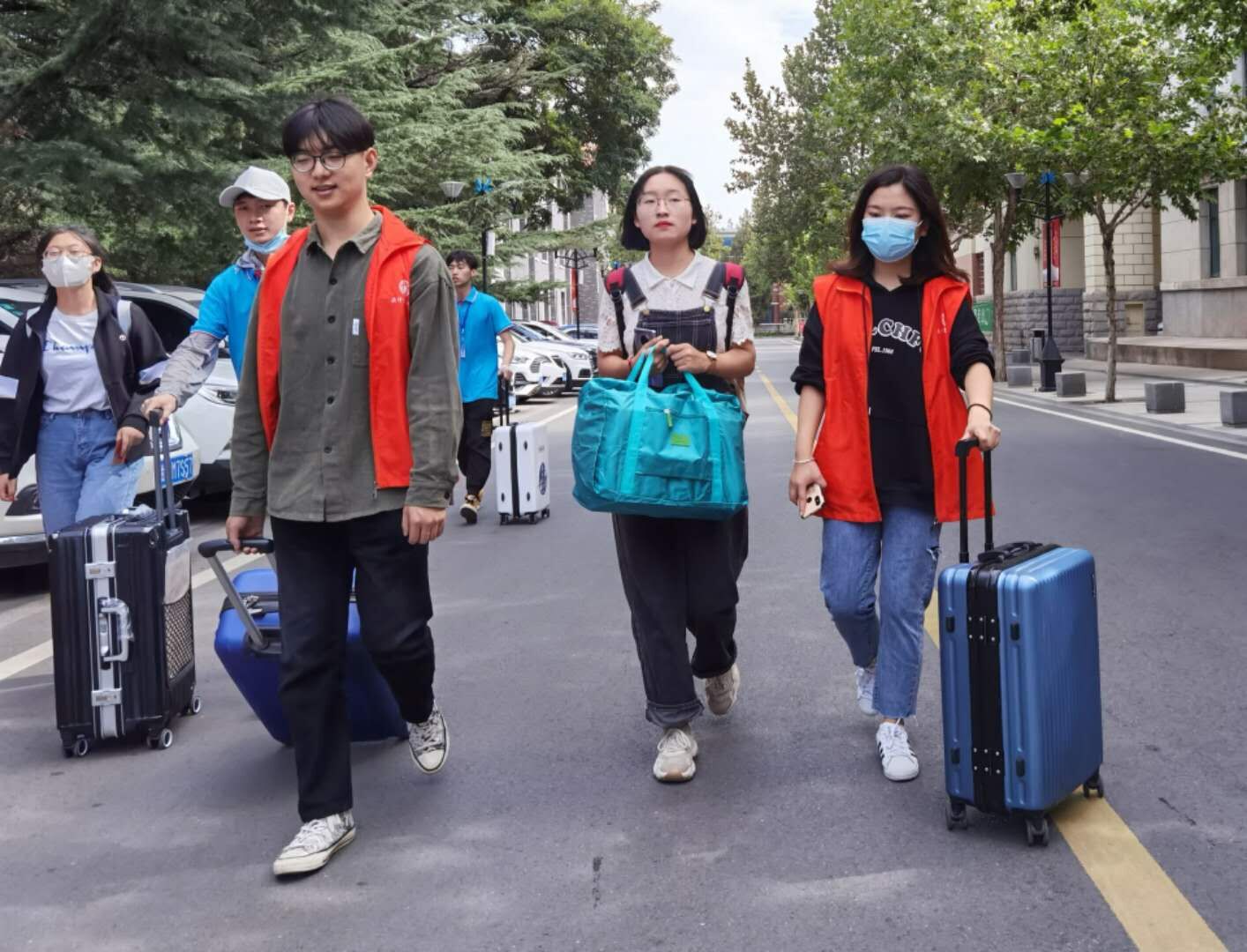 志愿者帮助新生拉行李