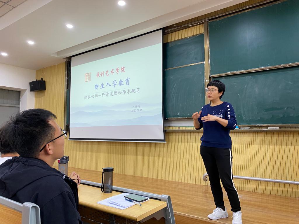 2020年9月11日下午,设计艺术学院研究生“科学道德与学风建设——院长论坛”报告会在琢玉楼107举行。会议由设计艺术学院副院长刘奔腾教授主持,研究生各学位点负责人、研究生教学秘书、辅导员出席,设计艺术学院全体20级研究生参加。
