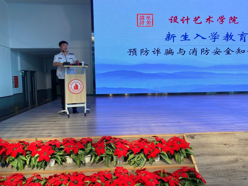 9月11日上午,设计艺术学院邀请七里河公安局反电诈中心朱毅斌警官、甘肃省五进防火宣传中心钟一丹教官,在校本部大学生活动中心为学院2020级新生做预防诈骗与消防安全知识讲座,300余名新生参加了讲座。