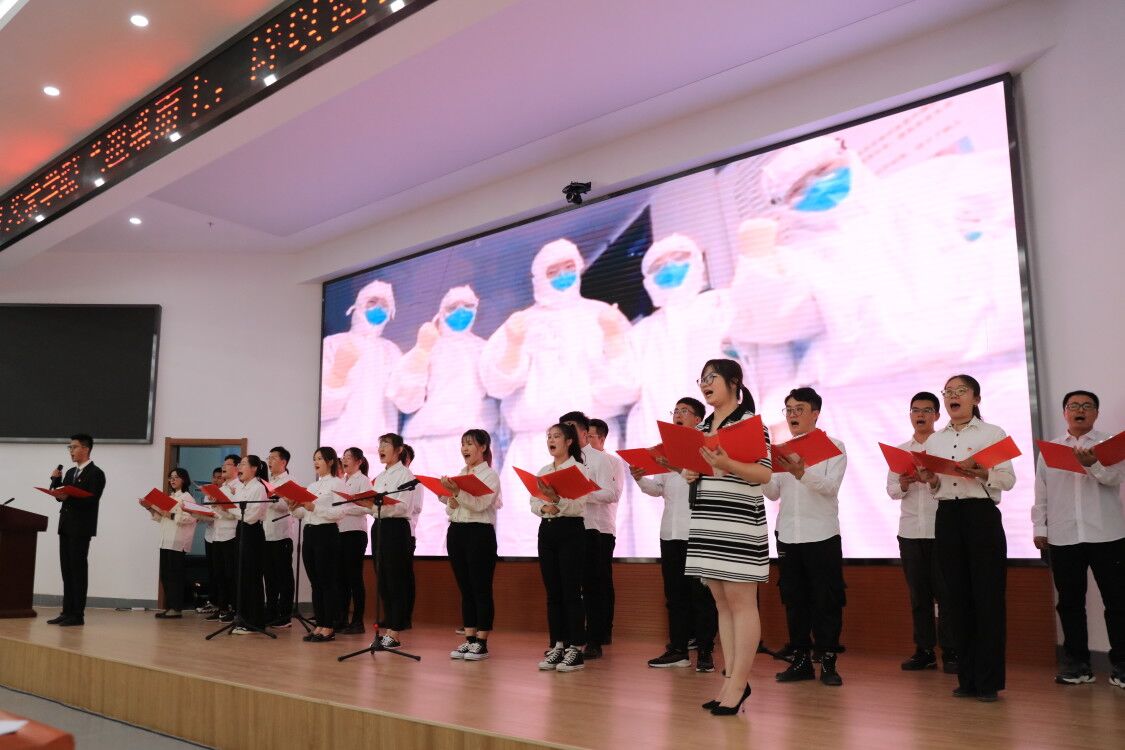 《抗击疫情 共克时艰》《因为有你》《中国.众志成城》《生命之光》《逆行的背影》《我,向人民报道》《我们有一个强大的祖国》等一首首让人动容的诗朗诵作品,回顾了抗疫的艰辛历程,歌颂了抗疫英雄在祖国的危难面前勇气,各支部党员激情饱满、豪情万丈,他们语气铿锵有力、眼神无比坚定,用自己的朗朗书声颂出了自己的一片初心和一份深情。