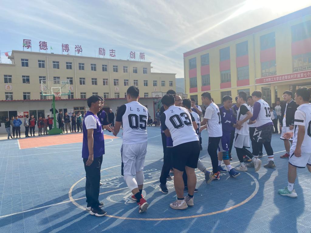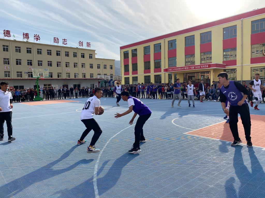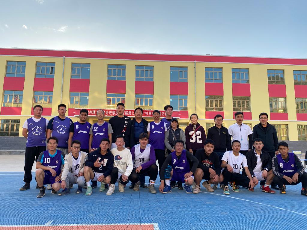 10月16日下午,为了迎接国家第7个国家扶贫日,设计艺术学院组织本科生篮球队,赴东乡县果园镇果园中学,与果园中学教工篮球队进行了一场友谊赛。学院党委副书记杨利玲,辅导员周佩、马俊,果园中学校长等参加活动。