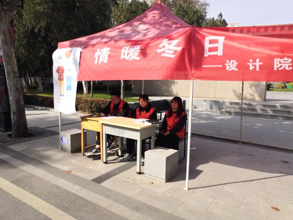 2020年11月2日,由设计艺术学院乐翼青年志愿服务队主办的冬日捐衣活动于兰工坪校区琢玉楼前正式开始,活动前后将持续八天。本次活动秉持奉献爱心的宗旨,将同学们的旧衣物收集、打包后,捐给山区的小朋友,用爱心温暖他们的冬天。