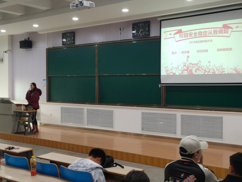 11月8日下午,设计艺术学院2018级全体学生、2017级非毕业班学生齐聚校本部1号北楼502教室,开展安全教育大会。本次年级大会由辅导员周佩老师主持,大会内容分为:宿舍安全、财产安全、网络安全、校纪校规四个方面。