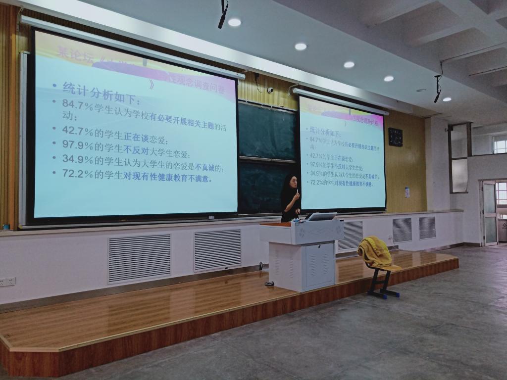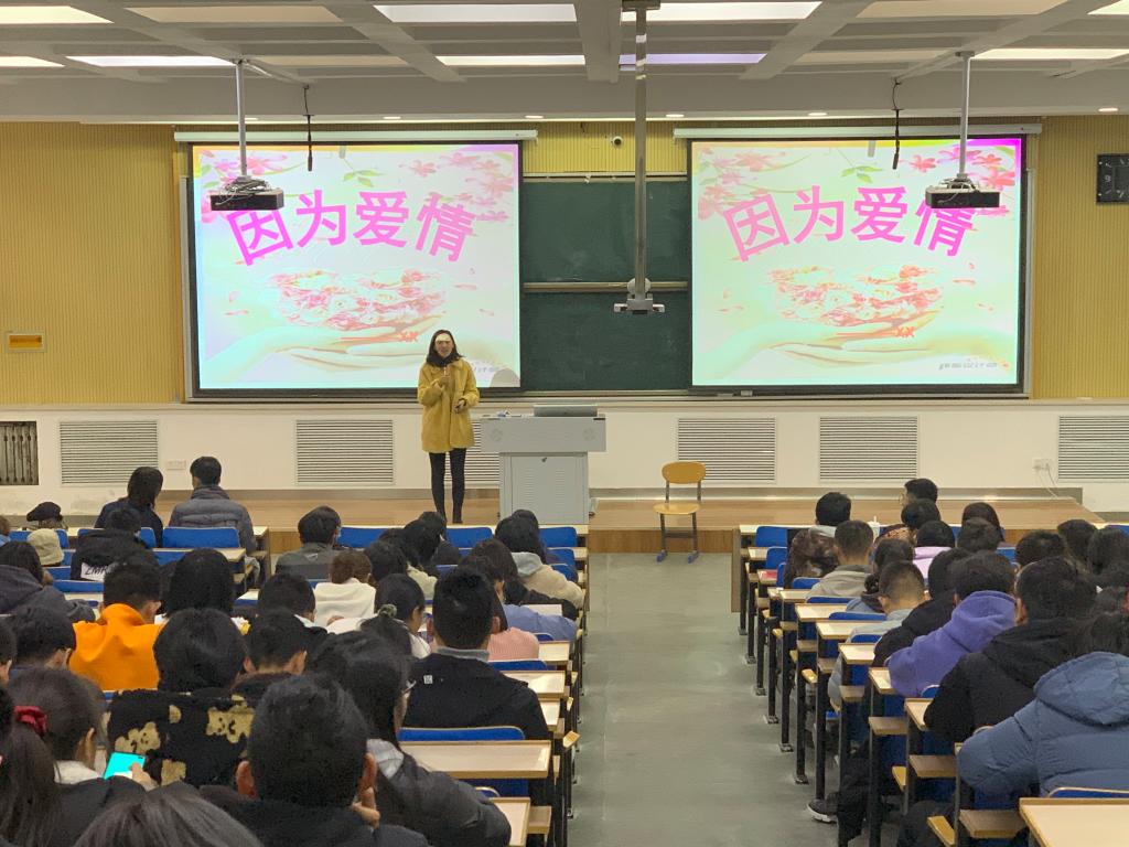 周佩老师剖析了大学生恋爱原因,讲解了恋爱动机、恋爱的阶段,列举了错误的恋爱观,通过真实、鲜活的事例引导广大学生树立正确的恋爱观,正确处理同学间的人际关系。杨凝老师从贫困生认定方法、奖学金及其类别、助学金、生源地助学贷款、勤工俭学活动、困难补助、诚信与感恩教育七个方面进行讲解,教育引导广大学生努力学习,积极参与各类实践活动,以优异的表现获得各类奖助学金。