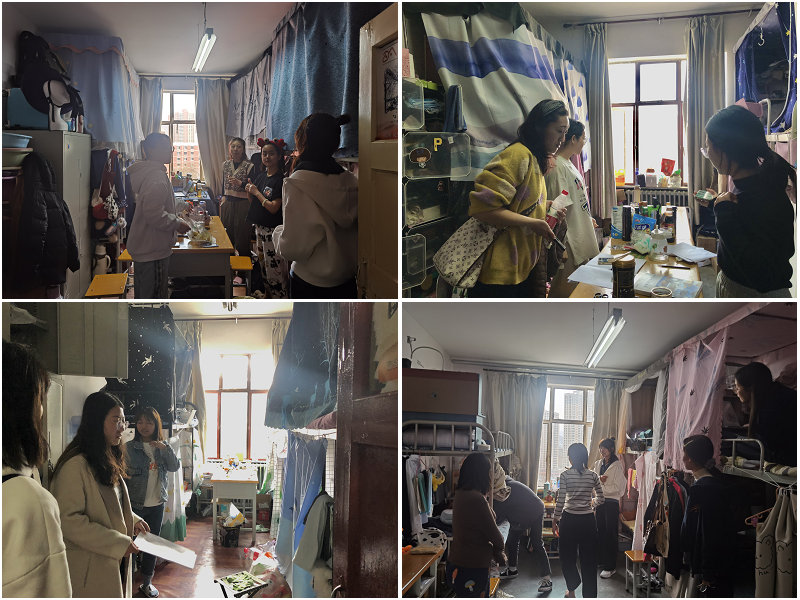 宿舍检查过程中主要围绕四个方面开展:一是检查有无违规电器的使用情况,二是检查有无私拉乱接电线的情况,三是检查是否存在消防安全隐患,四是检查宿舍卫生情况。