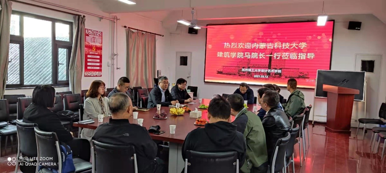 2021年3月12日,内蒙古科技大学建筑学院马明院长一行四人来我校设计艺术学院考察交流。同行的有内科大建筑学院建筑学系主任王文明,城市设计教研室主任王娟,教学办公室主任董铁鑫。交流会由我校设计艺术学院院长刘奔腾主持,设计艺术学院副院长张新红、建筑学系主任陈伟东、教学办主任赵亚平、办公室主任赵雅茹及建筑学系、城乡规划系多位教师出席。