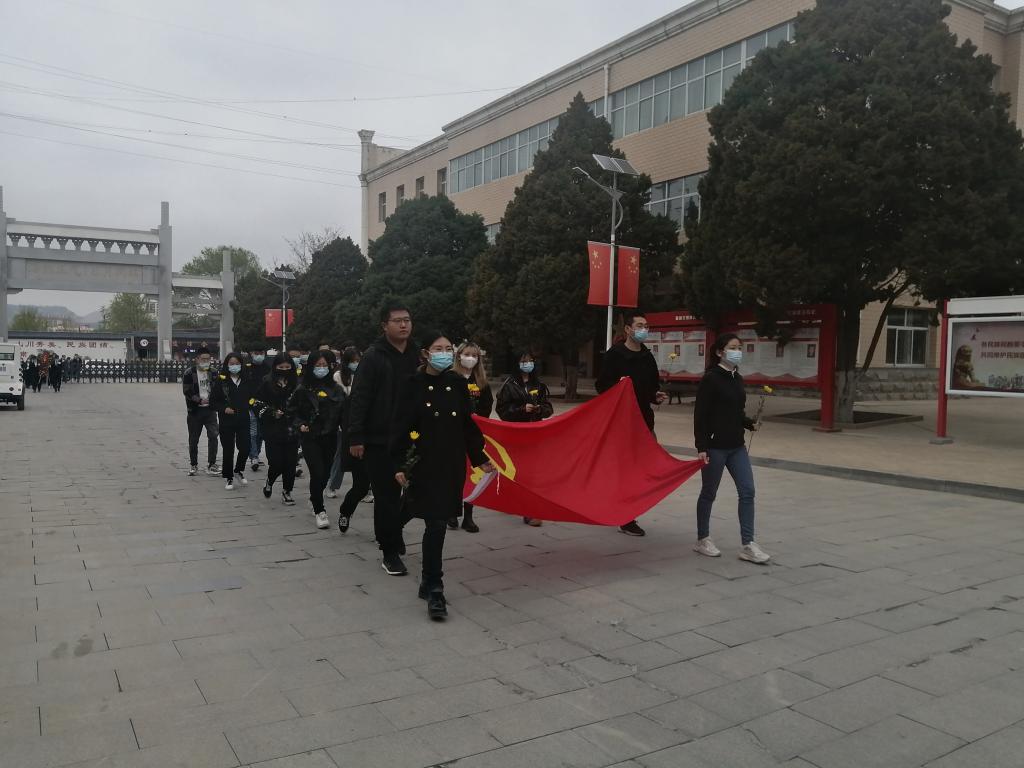 首先,全体党员向着革命烈士纪念碑列队行进,党员代表握着党旗,迈着坚毅的步伐,参加祭扫的全体同志在革命烈士纪念碑前肃立、默哀,寄托对烈士的缅怀与哀思。