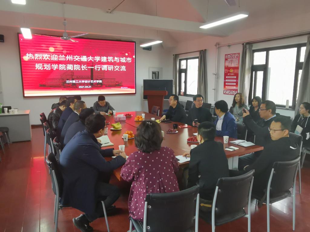 2021年4月21日,兰州交通大学建筑与城市规划学院蔺鹏臻院长一行14人来我校设计艺术学院就建筑学评估相关事项进行调研交流。交流会由我校设计艺术学院党委书记吴学楷主持,设计艺术学院院长刘奔腾等相关其他多位教师出席。