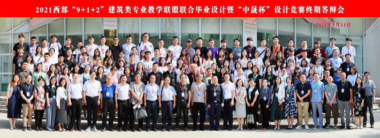 5月31日,2021西部“9+1+2”建筑类教学联盟联合毕业设计暨“中晟杯”设计竞赛终期答辩在位于古都西安的西北大学如期举行。我院建筑学和城乡规划专业的14名师生与来自长安大学、昆明理工大学、四川大学、西安交通大学、西北大学、西北工业大学、西南交通大学、新疆大学、云南大学及西华大学等11所西部高校的师生共同参加了此次活动。此次答辩还特别邀请了天津大学建筑学院陈天教授、陕西中晟规划设计研究院有限公司总工程师陈谊等多位业界知名专家作为校外评审。