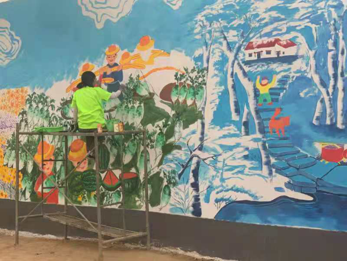 团队队员由2名艺术学、设计学研究生,5名产品设计专业本科生,1名视觉传达设计专业本科生,1名城乡规划专业本科生组成。团队通过调研金昌市金川区历史文化、传统技艺、当地特色,对乡村边角地块、房前屋后、街头巷尾闲置地段的6面墙进行墙绘,助推美丽乡村建设。