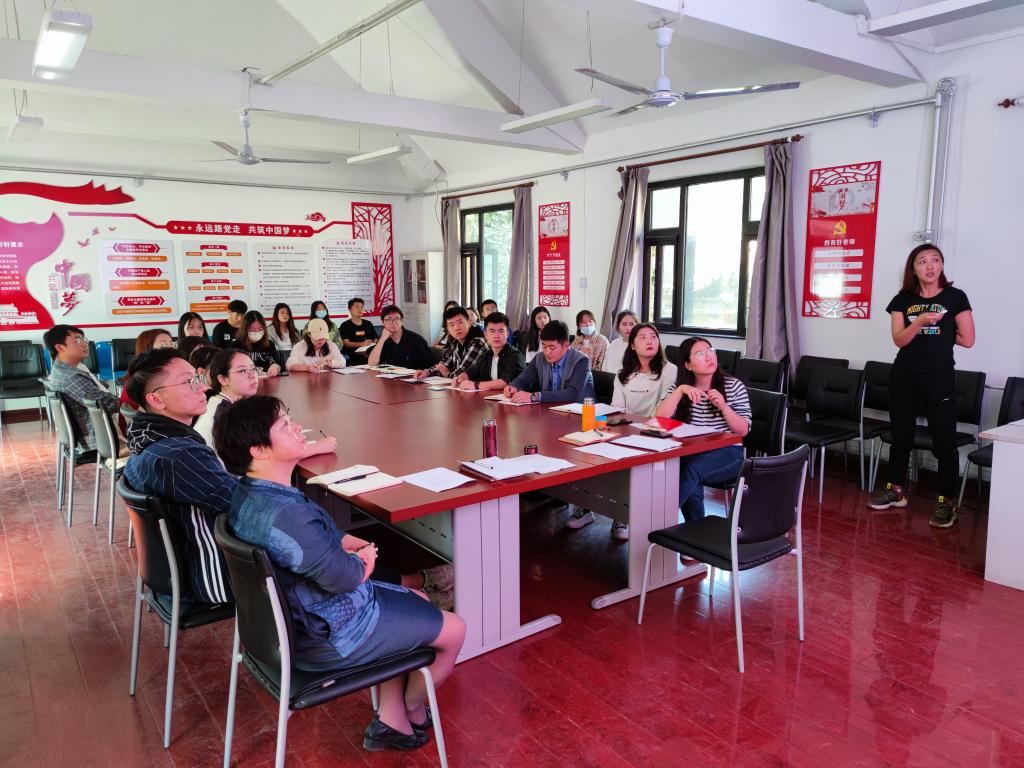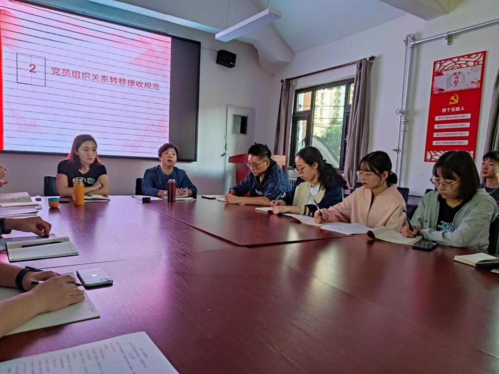 会上,杨书记带领全体参会人员学习《中国共产党党徽党旗条例》,要求各支部要认真学习领会《条例》精神,引导同学们正确认识党徽党旗的深刻内涵,自觉规范使用党徽党旗。周佩老师从“三会一课”“党员发展”“党员教育与考核”三大模块,深入细致地讲解了支部日常工作开展的要求,与会人员对党员发展流程、党员日常教育与志愿服务、支部日常工作纪律等有了更加深刻的认识。
