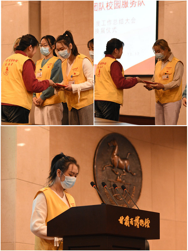 10月17日,2020—2021年度甘肃省博物馆志愿者团队校园服务队队长换届仪式在甘肃省博物馆一楼学术报告厅举行,此次活动设计艺术学院志愿者团队共有19名志愿者参加。