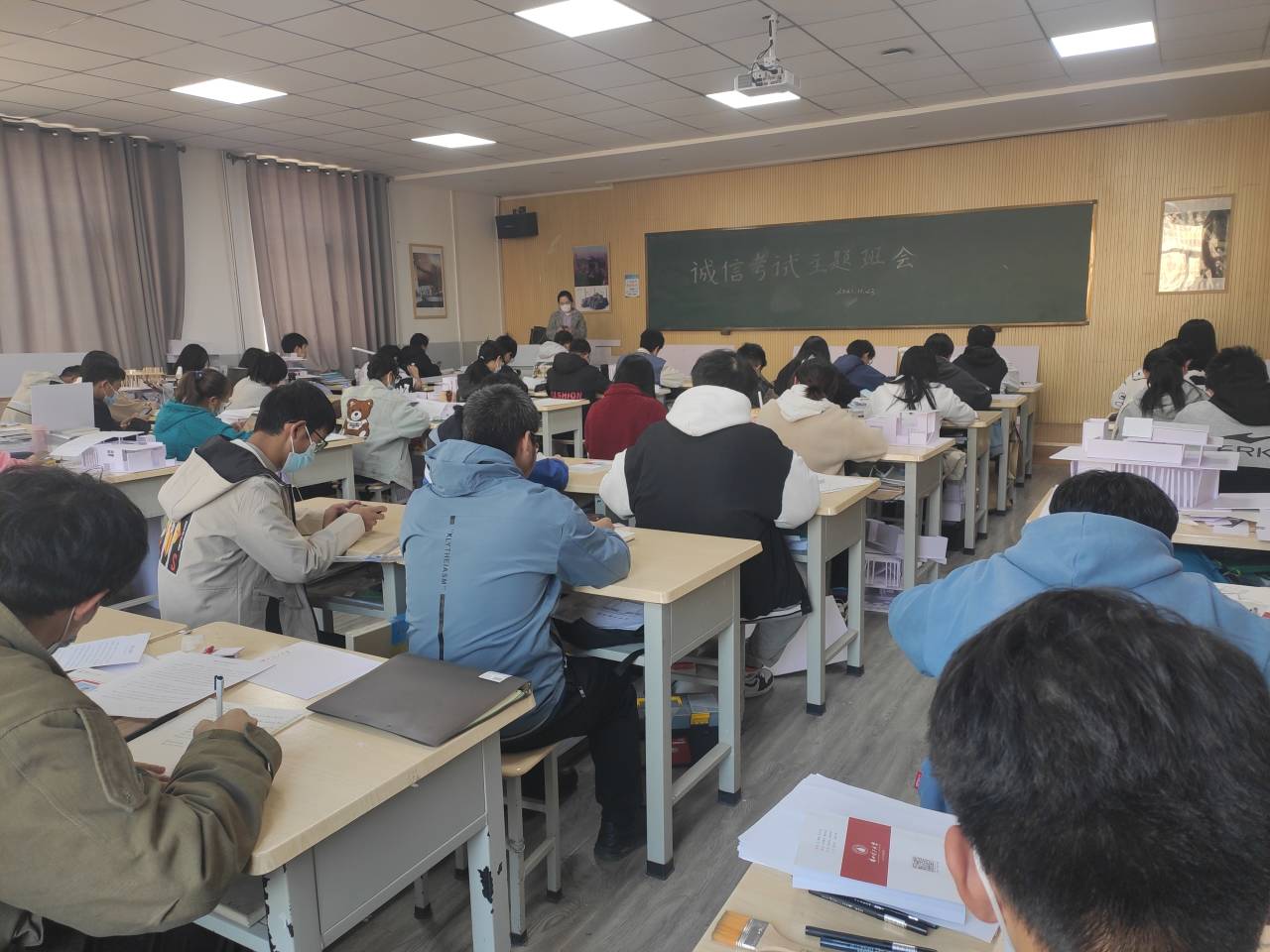 期末考试临近,为了营造良好的考试氛围,净化考试环境,杜绝有失诚信的舞弊行为。设计艺术学院2021级各班班主任组织本班同学召开了“诚信考试”的主题班会。
