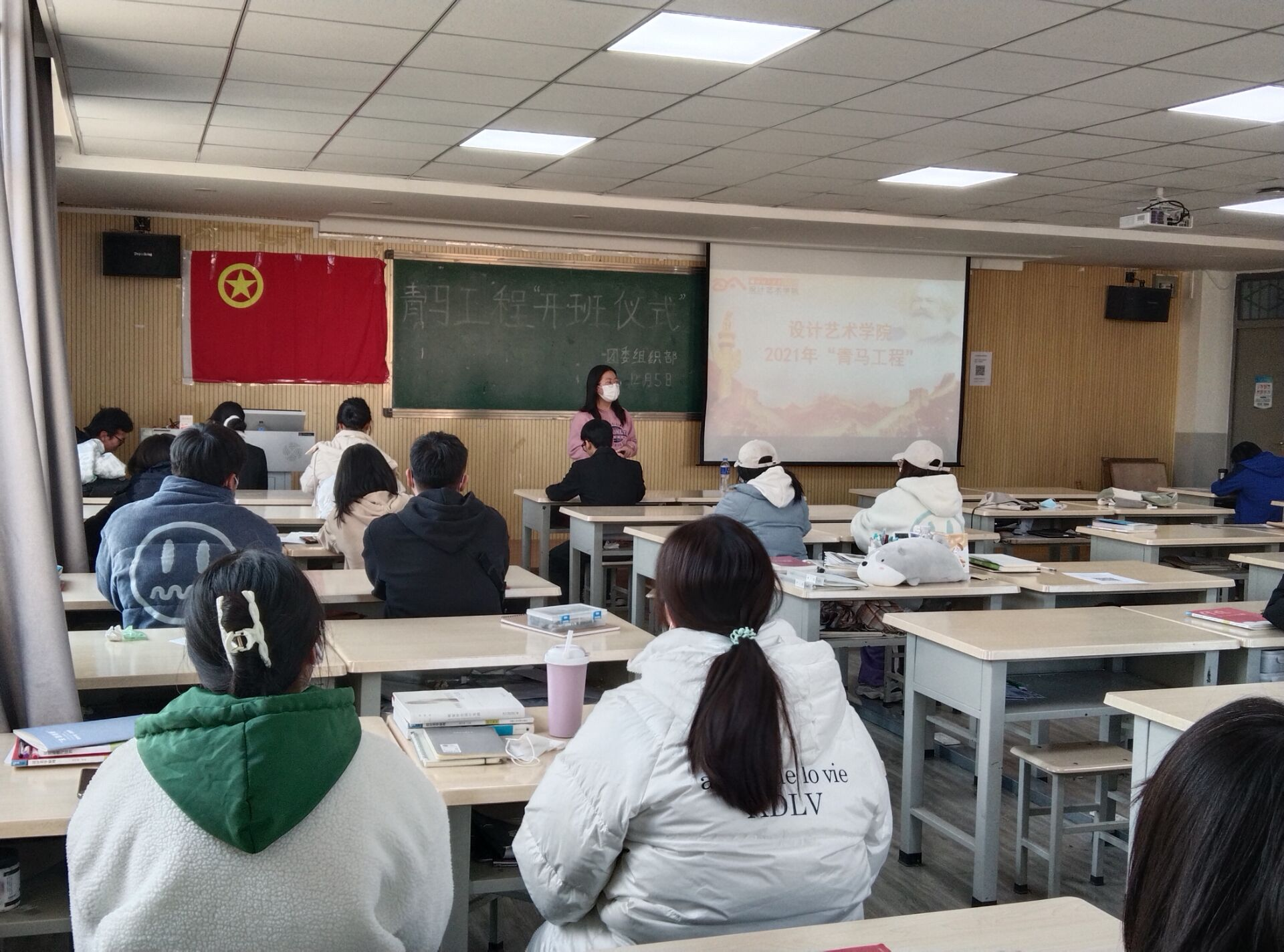 12月5日,设计艺术学院在琢玉楼325教室举行了举行2021-2022学年第一学期“青马工程”开班仪式。设计艺术学院全体青马培训班学员及学院团委指导老师宋美瑾参加开班仪式。