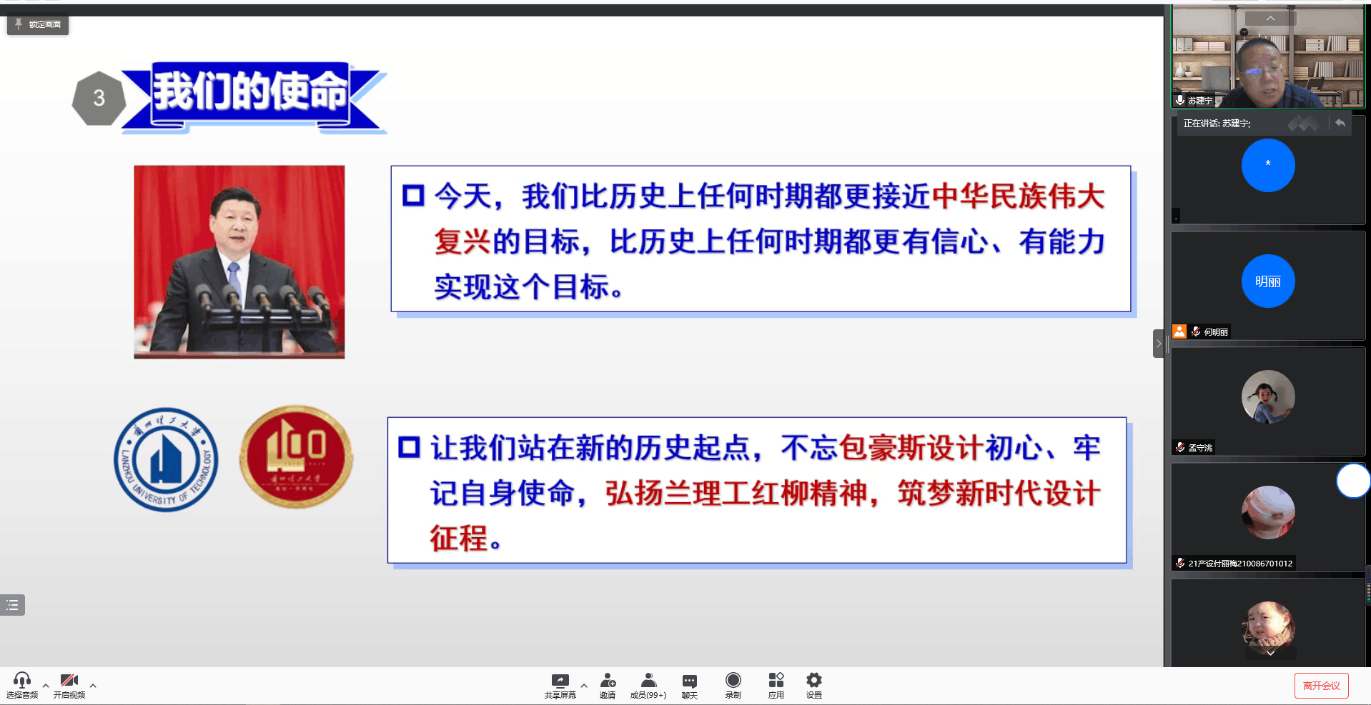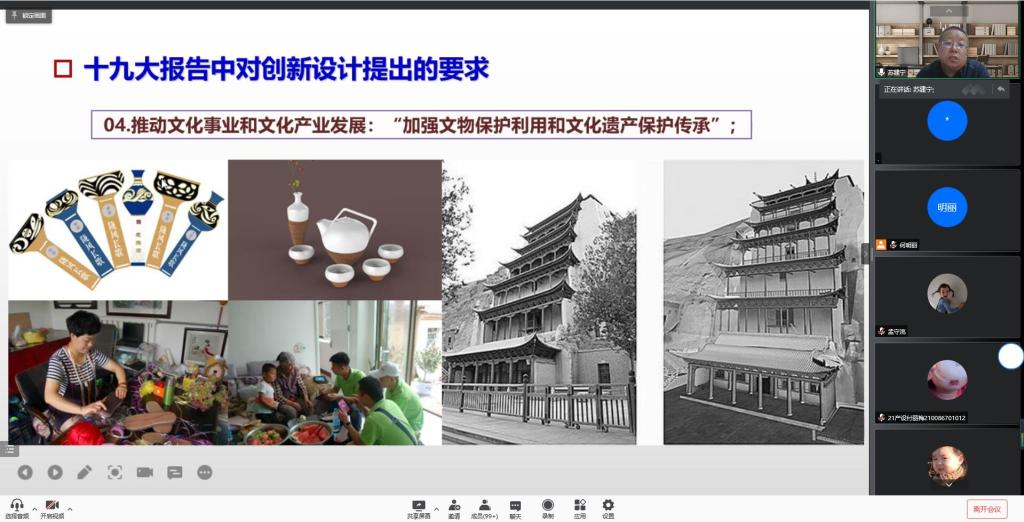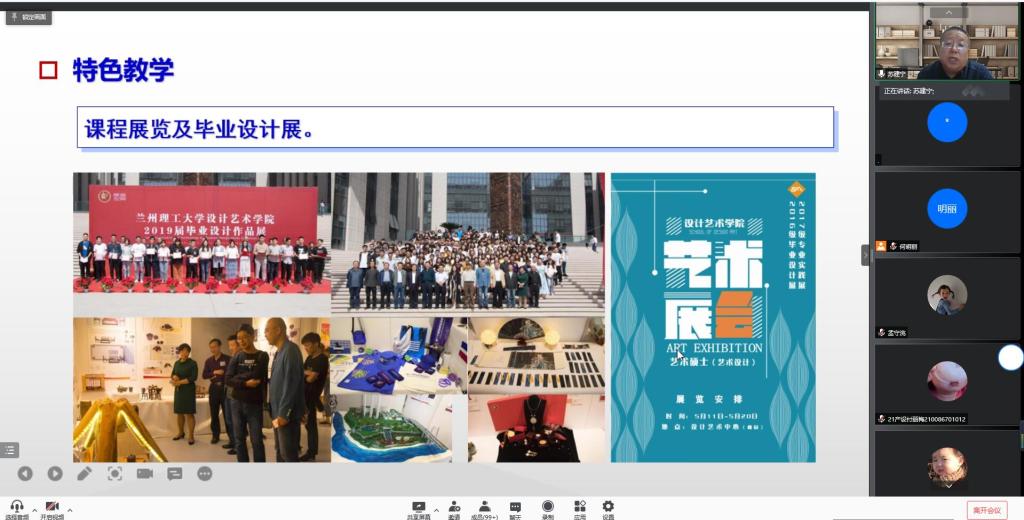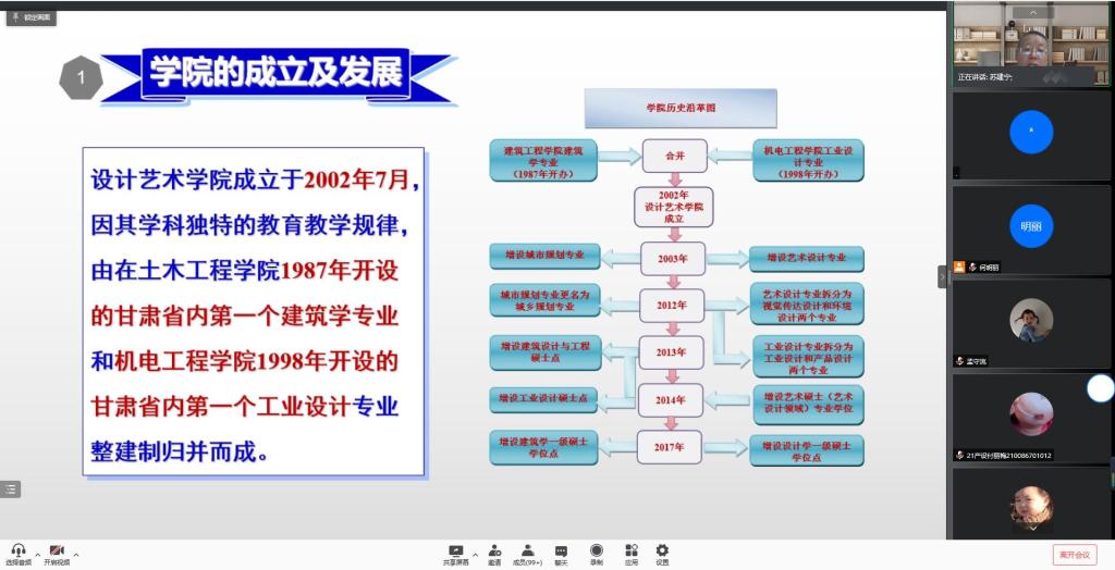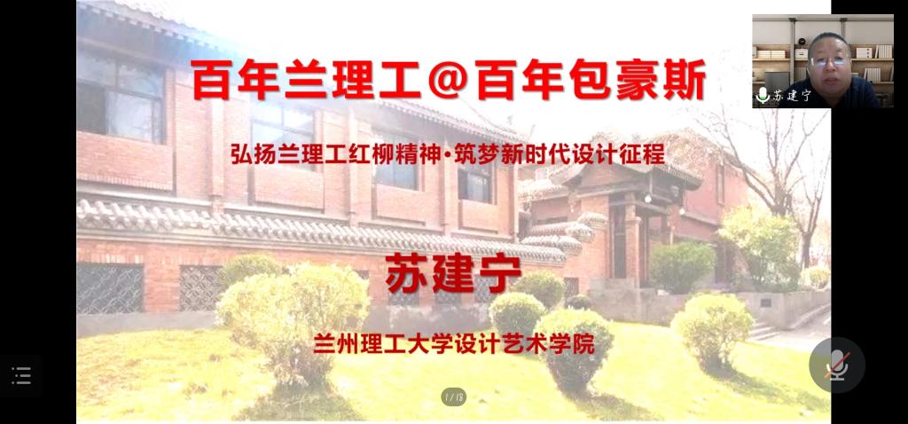2021年12月9日,设计艺术学院线上举行了2021年统一战线代表人士校园励志行报告会,学院邀请兰州理工大学研究生院院长苏建宁教授为2021级新生作了题为《百年兰理工@百年包豪斯---弘扬兰理工红柳精神·筑梦新时代设计征程》的报告。
