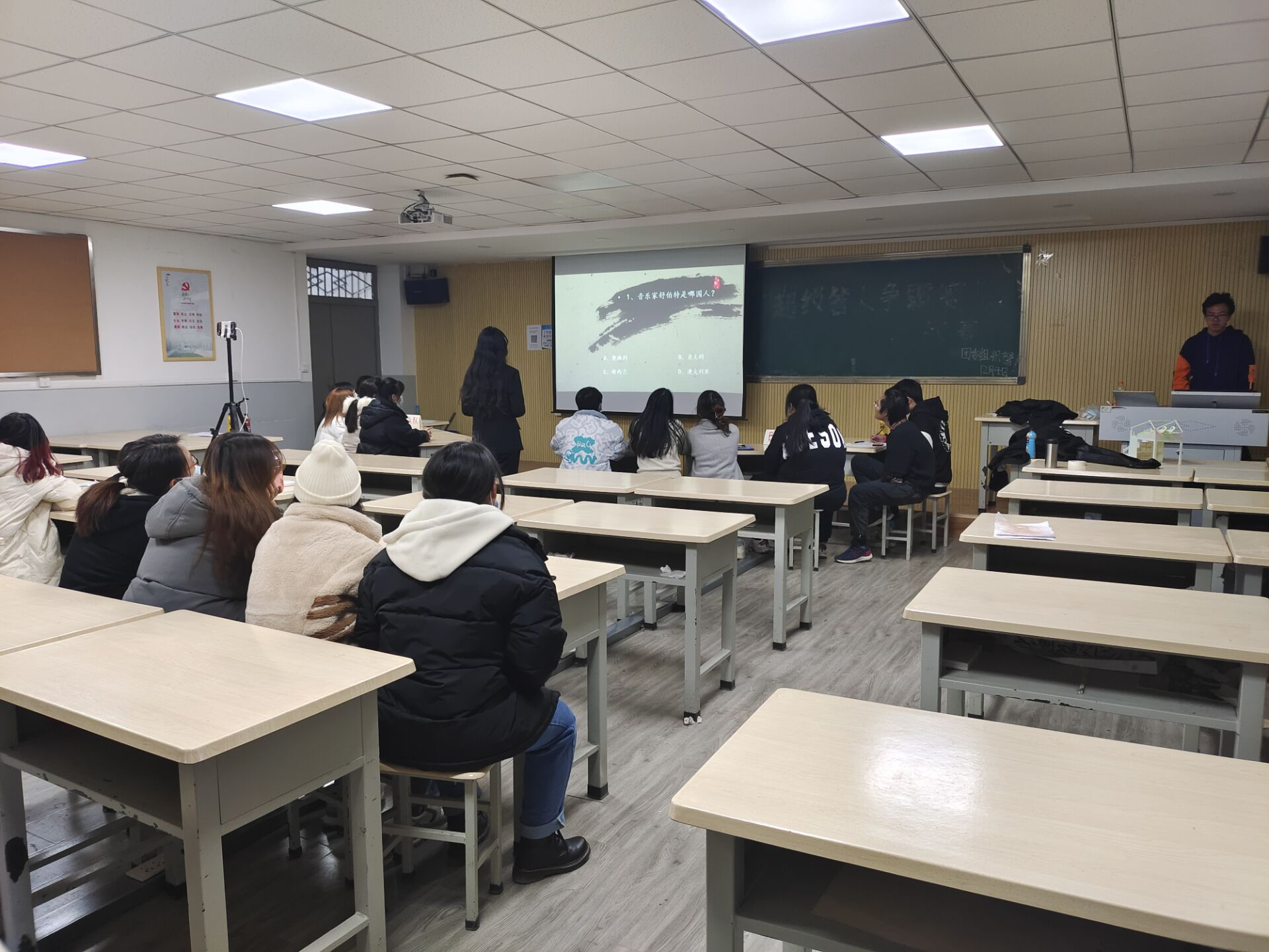 活动主题为“超级答人,学思并进”。比赛采取晋级赛制,共分为初赛、复赛、决赛,每轮比赛分为三个环节,第一环节为专属题答题,第二轮为抢答题,第三轮为黄金100秒。竞赛的内容主要包括“四史”知识、党章党史、疫情防控、国内外古代文学知识以及近现代文学知识等方面。期间,各组参赛选手都能以饱满的的热情投入到紧张有趣的知识竞赛中,并且充分向大家展示了团队协作能力与随机应变的能力。在比赛期间,还特地设置了“观众答题”环节,充分调动了广大同学的积极性,增强了同学们的参与感。经过激烈的比赛,最终评选出一、二、三等奖队伍各一支,优秀奖队伍十二支。