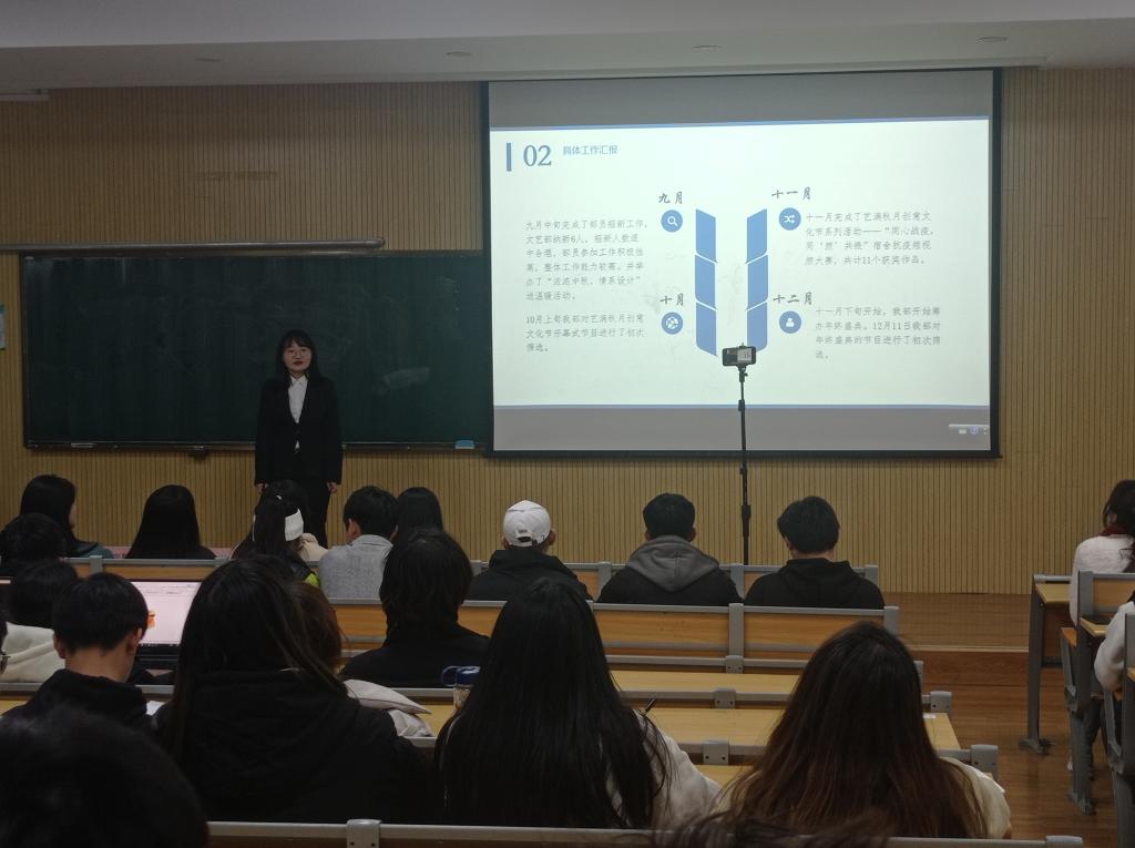 学院主席团成员及各工作部门负责人分别作述职报告,围绕工作汇报、问题总结、未来展望三个方面进行展示,总结了一学期以来,学生会工作成绩和存在的问题,展望未来,用实际行动表现学生会工作人员们从同学中来,到同学中去的初心。