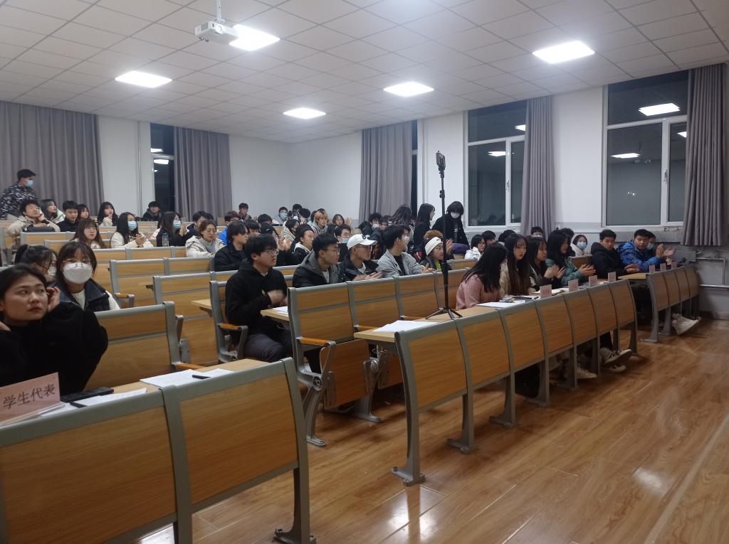 为进一步贯彻落实习近平总书记关于青年工作的重要思想和团的十八大、全国学联二十七大会议精神,推进学院学生会改革,支持和引导学院学生会更好地服务青年学生,设计艺术学院于12月30日在兰工坪校区琢玉楼109教室开展学生会组织工作人员述职评议,本次会议线上线下同时进行。学院党委副书记杨利玲,团委书记宋美瑾,辅导员李帅帅、何明丽,2021级16名学生代表组成评委会参与评议,学院学生会主席团成员及各工作部门负责人述职。