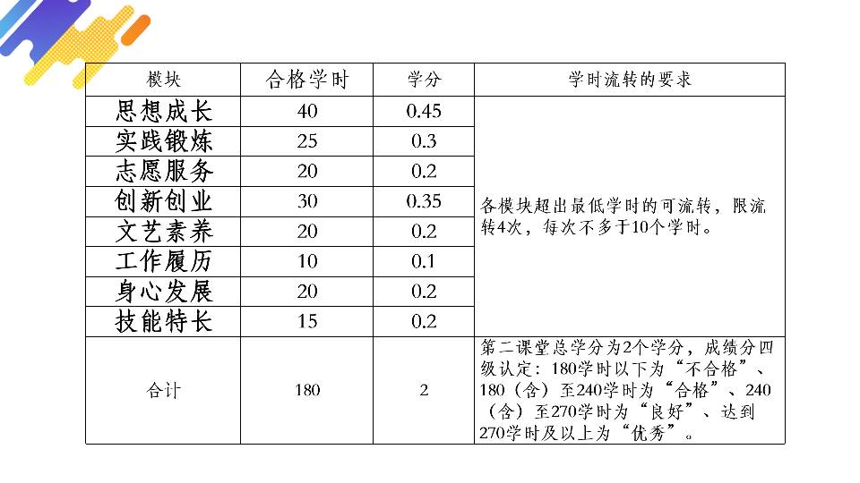 会上,素质拓展部的工作人员向大家介绍了“第二课堂成绩单”制度的实施办法,主要从实施目的、项目体系、学分要求三个方面进行了讲解。辅导员宋老师就成绩认定和预警机制向大家做了补充和说明。接着,宋老师就2022年寒假社会实践活动开展积极动员。介绍了社会实践主要项目和《关于开展2022年寒假社会实践的通知》中相关申请要求,希望同学们参与到社会实践活动的队伍中,走出校门开拓眼界,积极参与公益活动和知识交流。