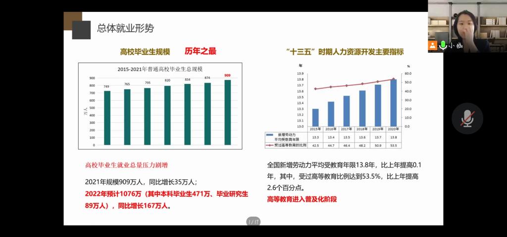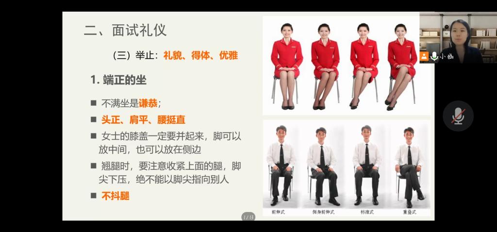 2022年4月3日,设计艺术学院邀请学校就业指导服务中心马文静老师开展了以“就业形势分析与求职定位”“个人优势盘点与简历制作”以及“求职面试技巧与礼仪”为主题的3场专题讲座。全体未就业毕业生以及学院辅导员参会。