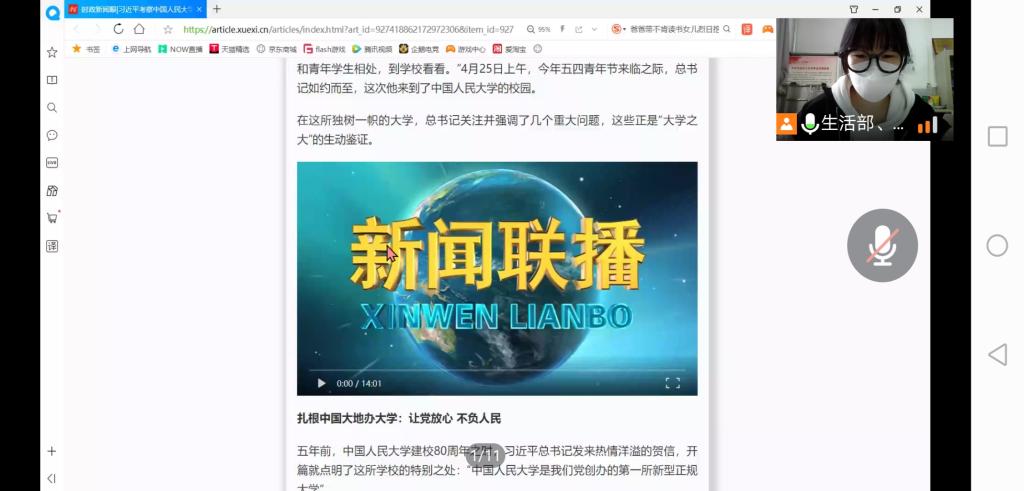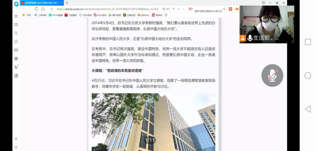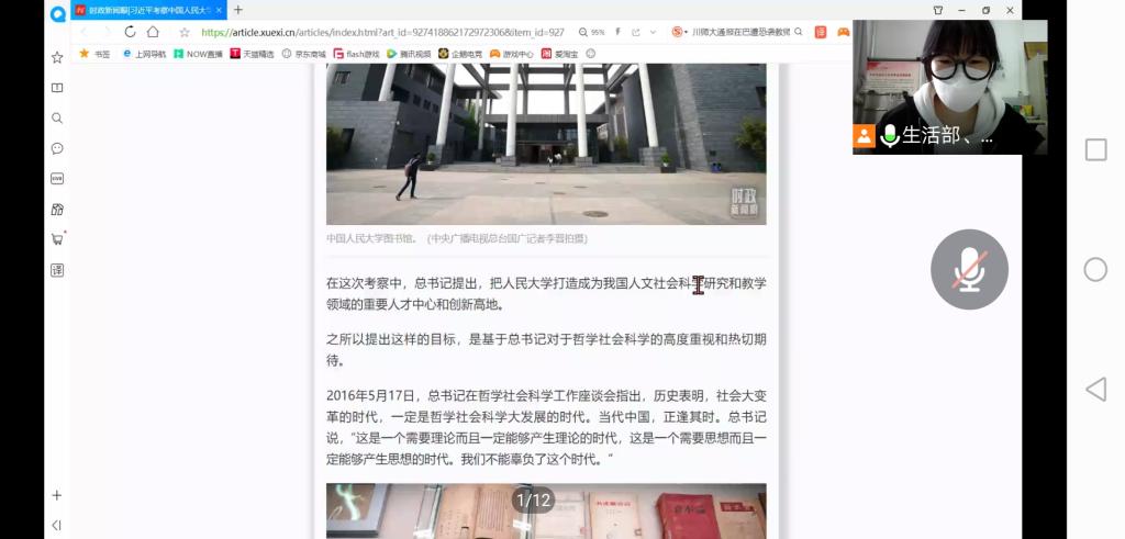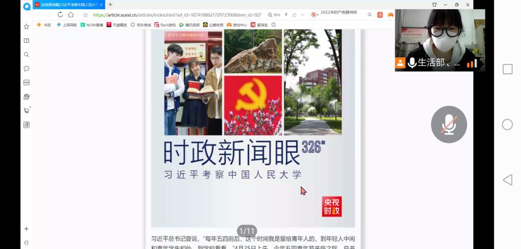 正值五四青年节来临之际,习近平总书记来到中国人民大学考察并发表了重要讲话。4月28日,设计艺术学院组织团委、学生会工作人员于线上组织开展学习习近平总书记在中国人民大学考察时的重要讲话精神。